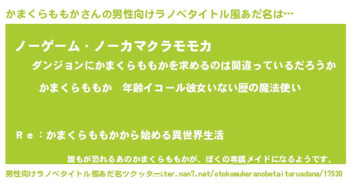 | 女子向けラノベタイトル風あだ名 | 『かまくらももかの玉の輿計画!』 |