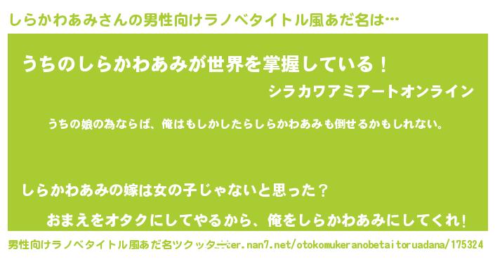 | 女子向けラノベタイトル風あだ名 | 『しらかわあみ伯爵の花嫁』 |