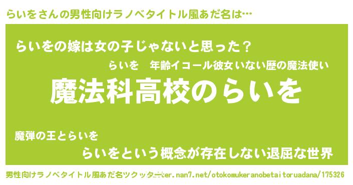 | 女子向けラノベタイトル風あだ名 | 『らいをアンティーク』 |