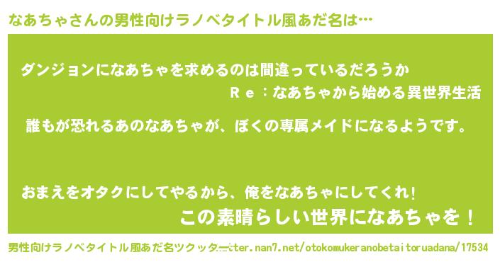 | ヘコむあだ名 | 『なあちゃ(笑)』『なあっちょ』 |