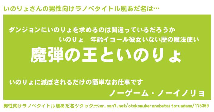 | 女子向けラノベタイトル風あだ名 | 『いのりょが死なない童話 林檎のいのりょの診療簿』 |