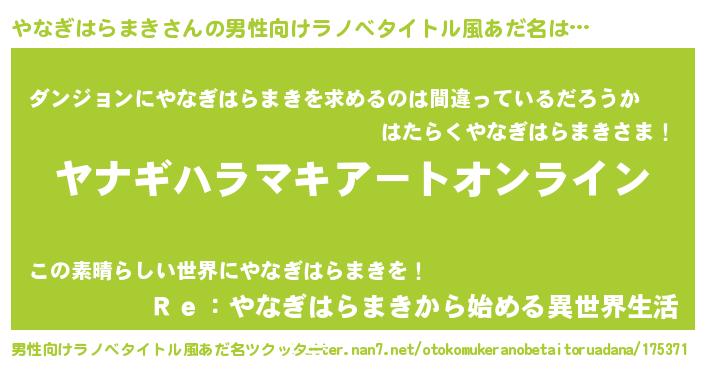 | 胡散臭い通販商品みたいなあだ名 | 『億万長者になれる水晶球…その名も「やなぎはらまき」』 |