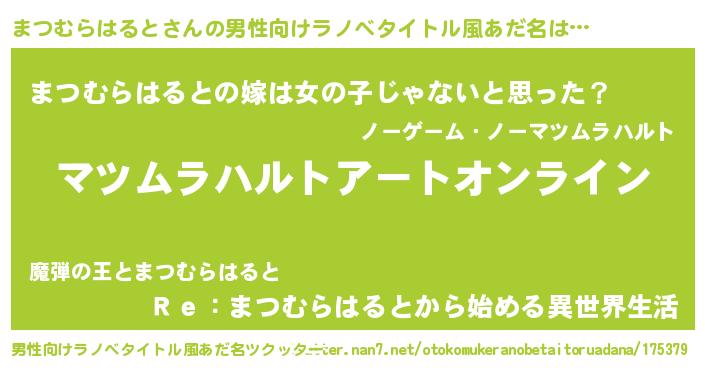 | 女子向けラノベタイトル風あだ名 | 『誰かこのまつむらはるとを説明してください! ~契約から始まるウェディング~』 |