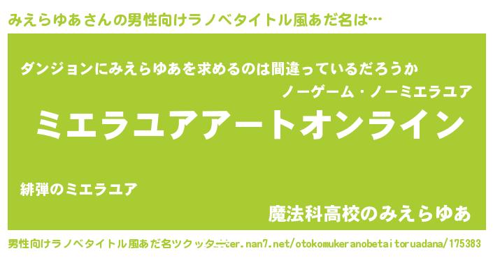 | 女子向けラノベタイトル風あだ名 | 『誰かこのみえらゆあを説明してください! ~契約から始まるウェディング~』 |