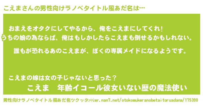 | 胡散臭い通販商品みたいなあだ名 | 『前代未聞の水素水…その名も「こえま」』 |