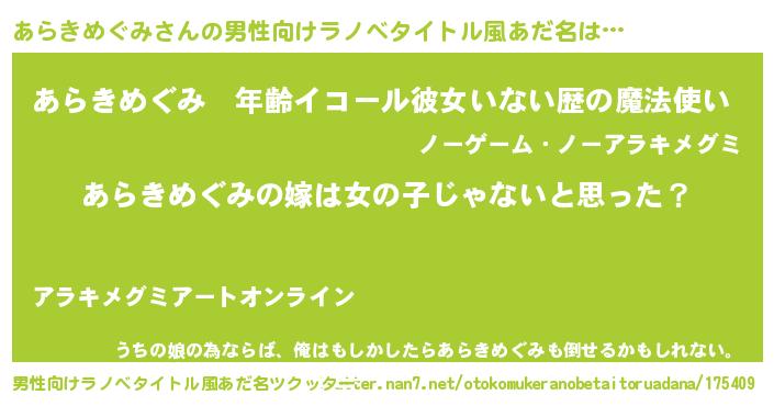 | 伝説のあだ名 | 『解き放たれた魔法使いあらきめぐみ』 |