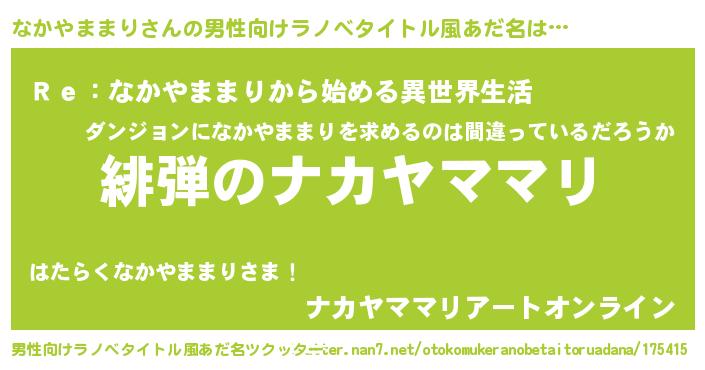 | 意味不明あだ名 | 『自称なかやままり』 |
