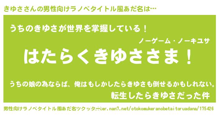 | ヒーロー風カッコイイあだ名 | 『正義の使者きゆさ』『幻影騎士キユ』 |