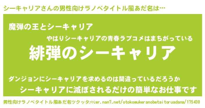 | ヒーロー風カッコイイあだ名 | 『仮面シーダー』『幻影騎士シー』 |