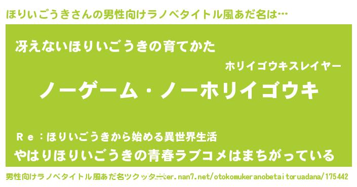 | 女子向けラノベタイトル風あだ名 | 『死神ほりいごうきの再婚』 |