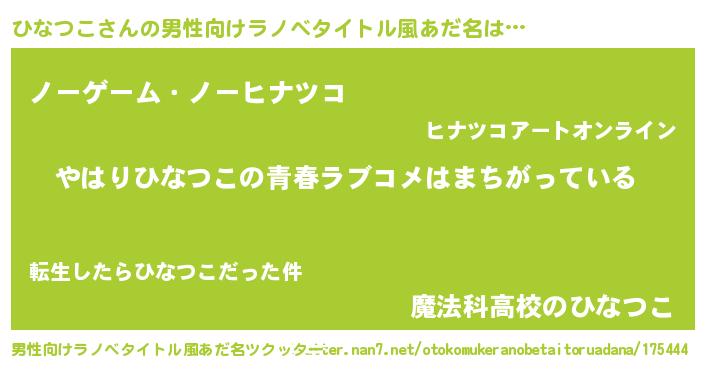 | 女子向けラノベタイトル風あだ名 | 『ひなつこの雑貨屋さん』 |