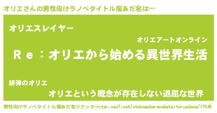 | ヘコむあだ名 | 『オリエ(笑)』『オリっふぃ~』 |