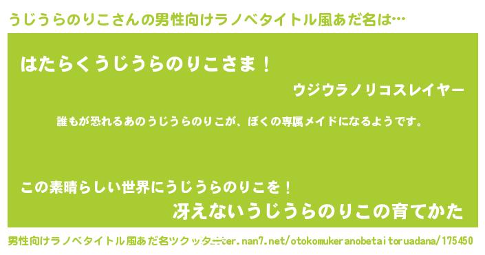 | 女子向けラノベタイトル風あだ名 | 『異世界でカフェうじうらのりこを開店しました。』 |