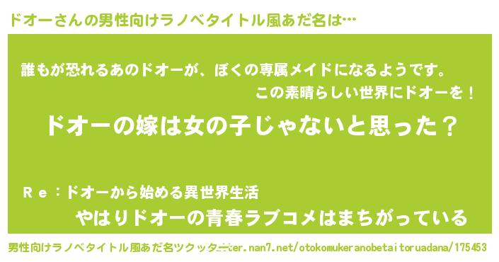 | 女子向けラノベタイトル風あだ名 | 『ドオー様がみてる』『闇のドオー』 |