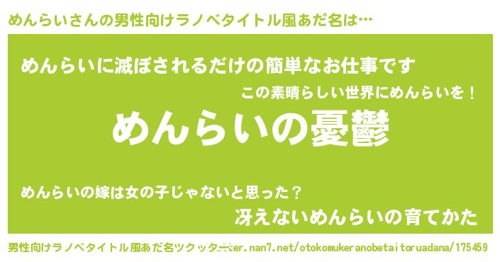 | 女子向けラノベタイトル風あだ名 | 『めんらい姫と円卓の騎士』 |