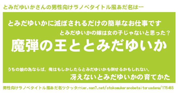 | 女子向けラノベタイトル風あだ名 | 『とみだゆいかが死なない童話 林檎のとみだゆいかの診療簿』 |