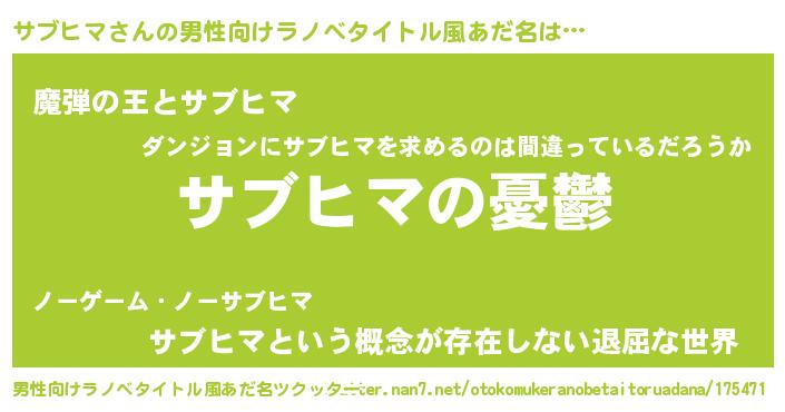 | ヒーロー風カッコイイあだ名 | 『スーパーサブヒマ』『仮面サブダー』 |