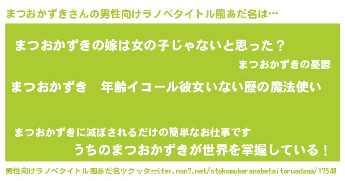 | 女子向けラノベタイトル風あだ名 | 『まつおかずきの玉の輿計画!』 |