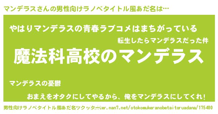 | 女子向けラノベタイトル風あだ名 | 『マンデラスアンティーク』 |