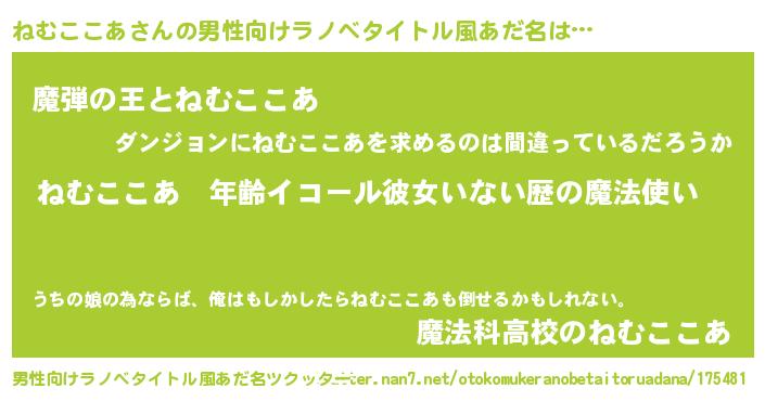 | 伝説のあだ名 | 『覚醒した遊び人ねむここあ』 |