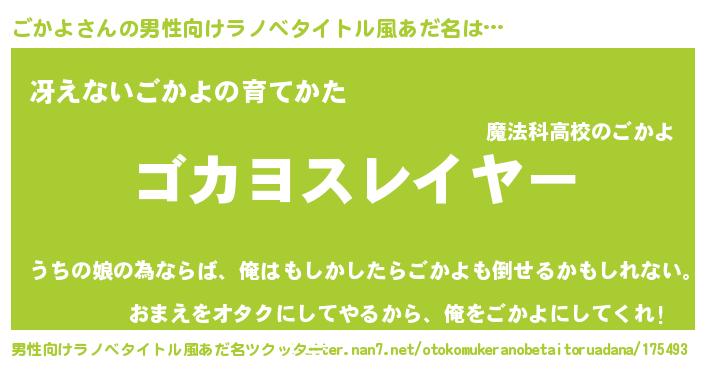 | ヒーロー風カッコイイあだ名 | 『正義の使者ごかよ』『最強戦士ゴカヨ』 |