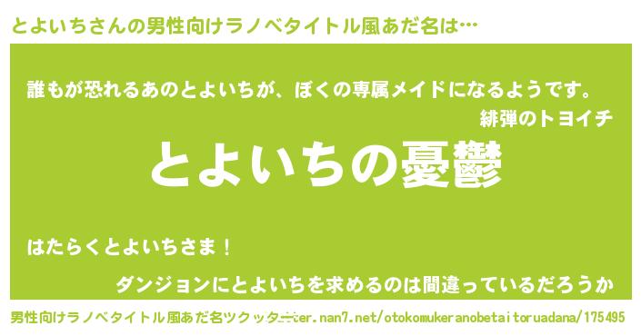 | 女子向けラノベタイトル風あだ名 | 『(仮)とよいちのやんごとなき事情』 |