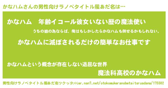 | 肩書あだ名 | 『かなハムマネージャー』『かなハム少尉』 |