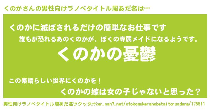 | 女子向けラノベタイトル風あだ名 | 『(仮)くのかのやんごとなき事情』 |