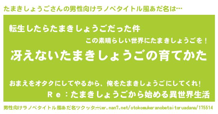 | 胡散臭い通販商品みたいなあだ名 | 『テレビで話題の高麗人参…その名も「たまきしょうご」』 |