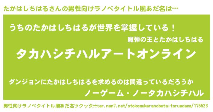 | ヒーロー風カッコイイあだ名 | 『スーパータカハシチハル』 |