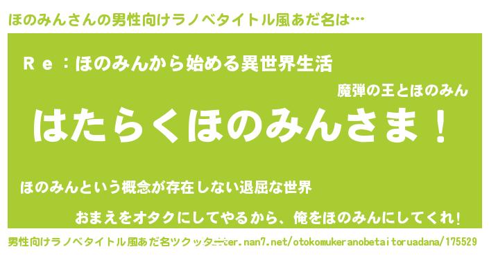 | ヘコむあだ名 | 『ほのみん(笑)』『なまこ酢』 |