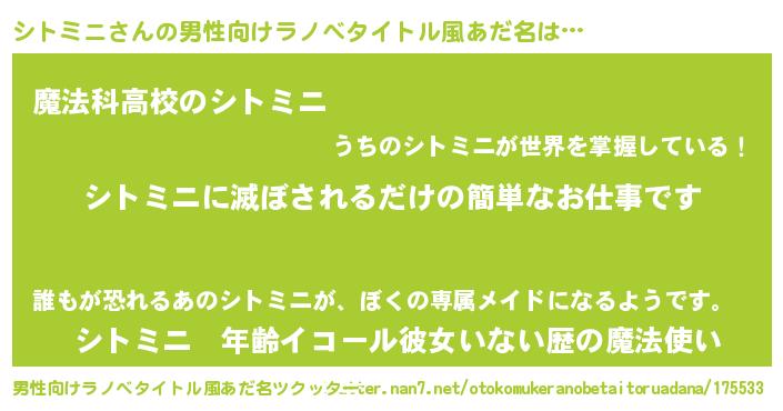 | 意味不明あだ名 | 『自称シトミニ』『なめこ科シトミニ属』 |