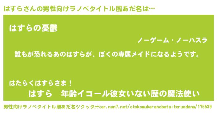| 胡散臭い通販商品みたいなあだ名 | 『来世でも幸せになれる健康食品…その名も「はすら」』 |