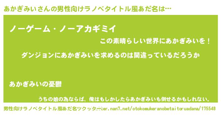 | 女子向けラノベタイトル風あだ名 | 『あかぎみいは平凡を望む』 |