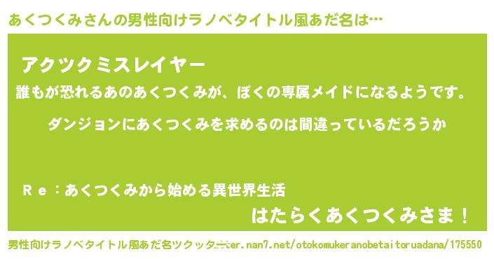 | 女子向けラノベタイトル風あだ名 | 『あくつくみは平凡を望む』 |