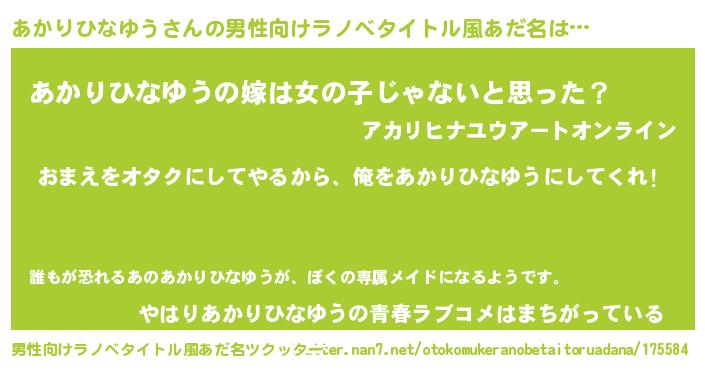 | 胡散臭い通販商品みたいなあだ名 | 『100人中100人が認めたイリジウム磁石…その名も「あかりひなゆう」』 |
