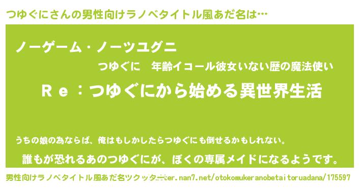 つゆぐにさんの男性向けラノベタイトル風あだ名をツクッター!