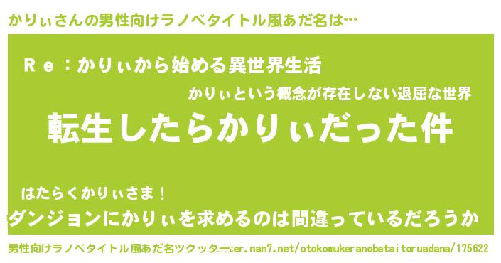 | 胡散臭い通販商品みたいなあだ名 | 『テレビで話題の高麗人参…その名も「かりぃ」』 |