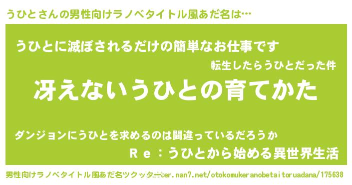 | ヒーロー風カッコイイあだ名 | 『サイバー戦士ウヒト』『天弓騎士ウヒ』 |