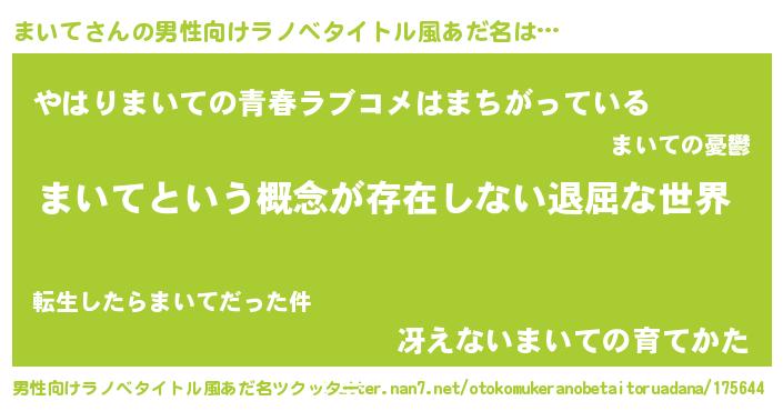 | 胡散臭い通販商品みたいなあだ名 | 『絶対に幸福をもたらす水素水…その名も「まいて」』 |
