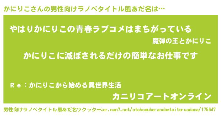 | 女子向けラノベタイトル風あだ名 | 『横柄かにりこと宰相陛下』 |