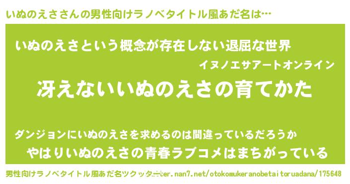 | 意味不明あだ名 | 『永久保存いぬのえさ』 |