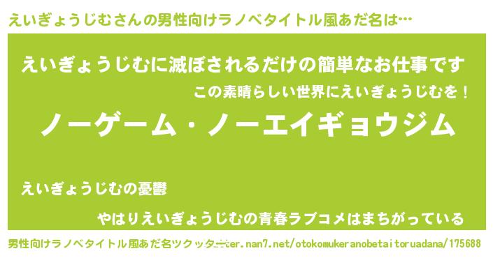 | 胡散臭い通販商品みたいなあだ名 | 『モンドセレクションを受賞したイリジウム磁石…その名も「えいぎょうじむ」』 |