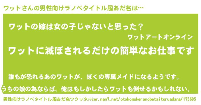 | 意味不明あだ名 | 『とにかく怪しいワット』『自称ワット』 |