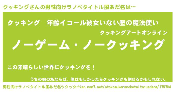 | 女子向けラノベタイトル風あだ名 | 『死神クッキングの再婚』 |