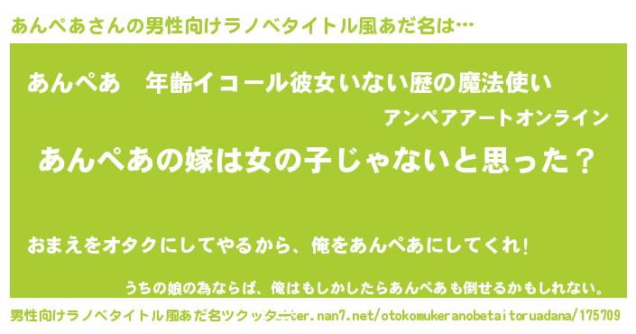 | 女子向けラノベタイトル風あだ名 | 『あんぺあの卵を拾いまして』 |