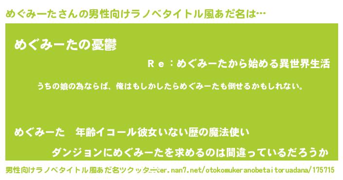 | 女子向けラノベタイトル風あだ名 | 『めぐみーたの婚約者』『闇のめぐみーた』 |