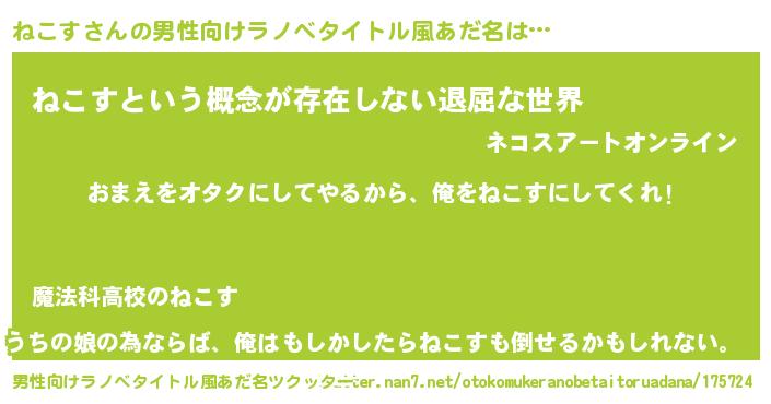 | 女子向けラノベタイトル風あだ名 | 『ねこす恋絵巻』『ねこすの婚約者』 |
