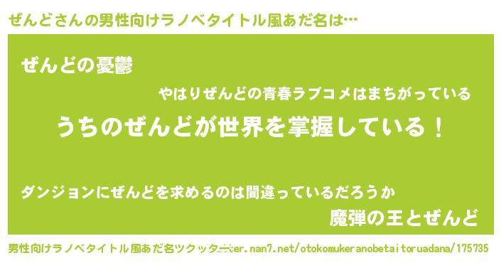 | 女子向けラノベタイトル風あだ名 | 『男装ぜんどの憂鬱な任務』 |