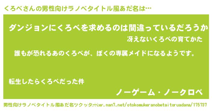 | 女子向けラノベタイトル風あだ名 | 『くろべの契約王妃』『死神くろべの再婚』 |